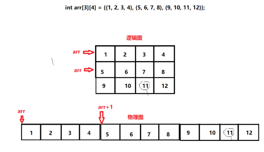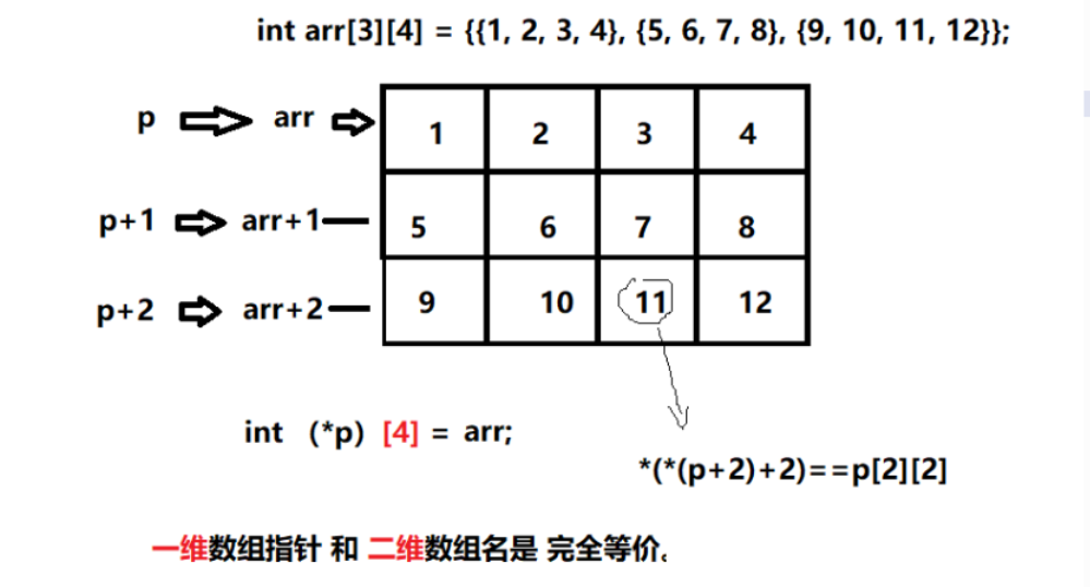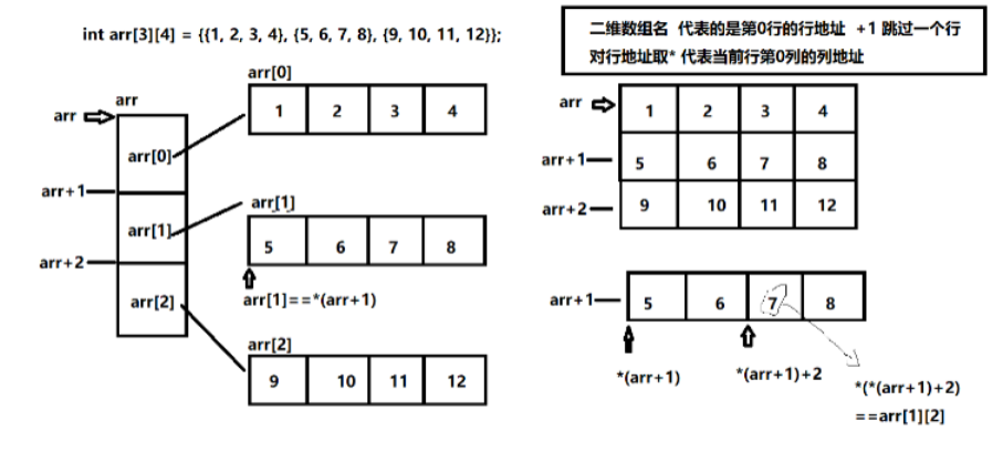 arr[1]+2 =>*(arr+1)+2 =>第1行第2列的列地址