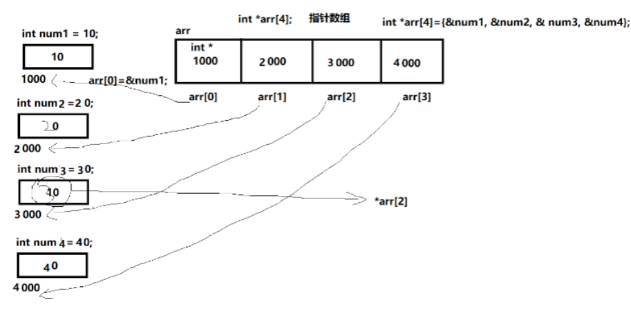 arr1是在指针数组 存放的是每个字符串的首元素的地址