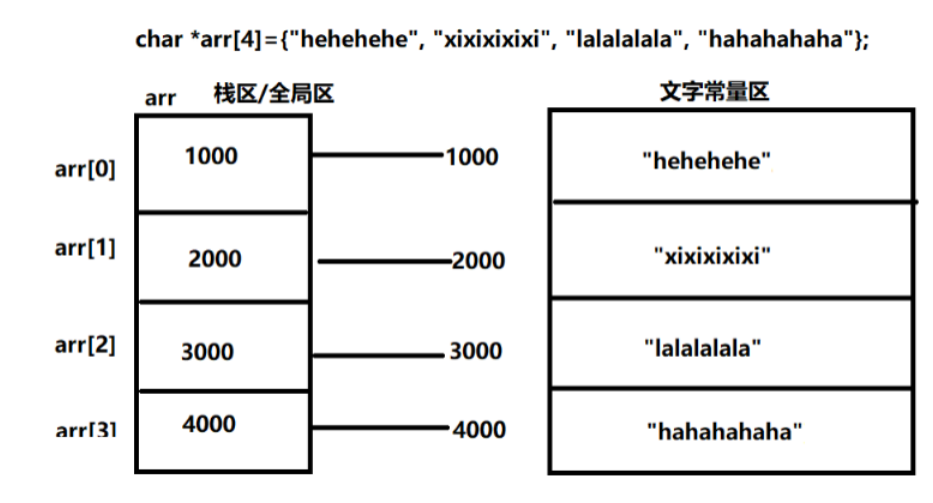 char *arr1[4]={&#34;hehehehe&#34;, &#34;xixixixixi&#34;, &#34;lalalalala&#34;, &#34;hahahahaha&#34;};